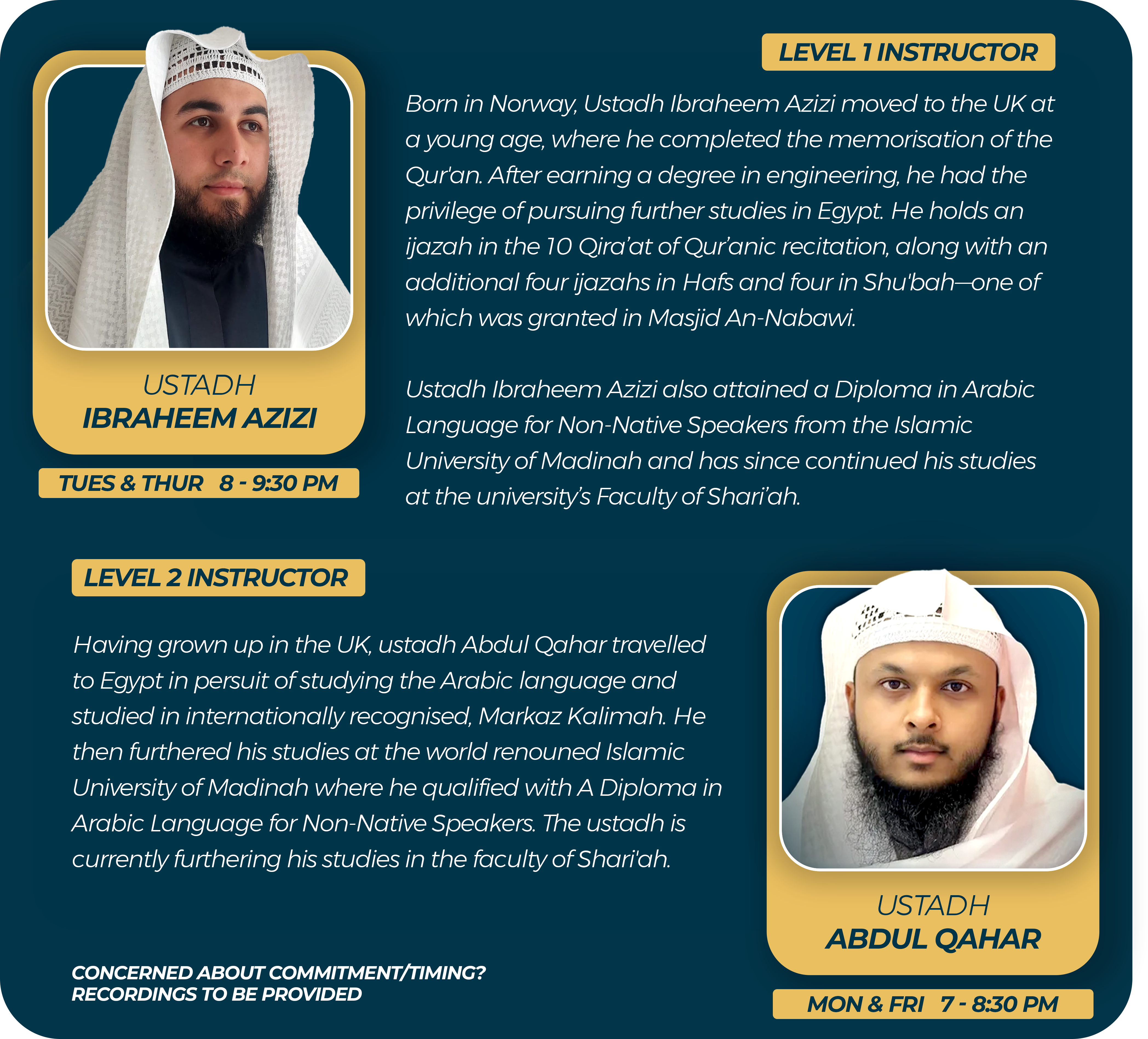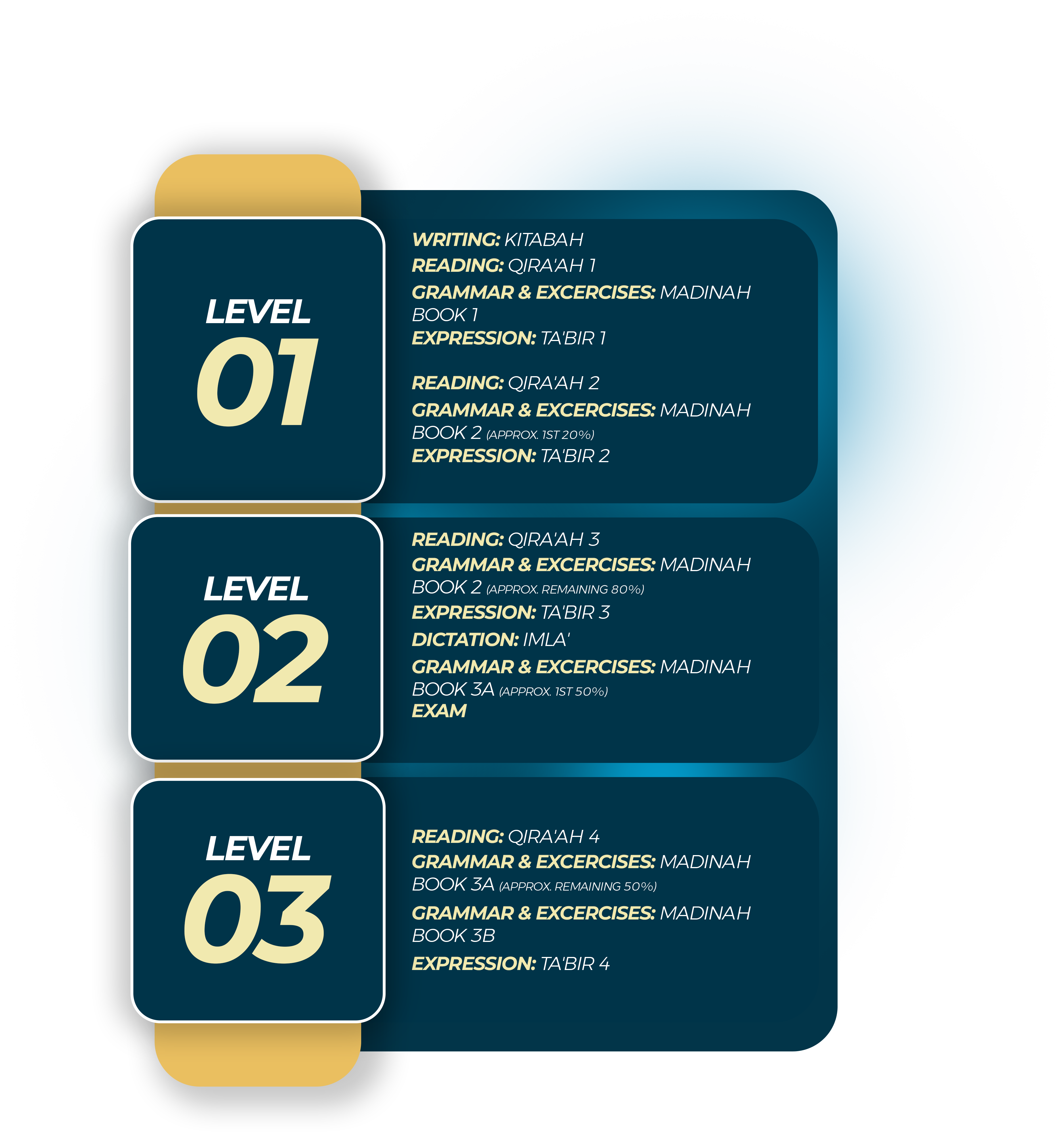 Join our complete 3 year syllabus based on the Arabic progeamme taught at the world renowned Islamic University of Madinah, a tried and tested programme that works.